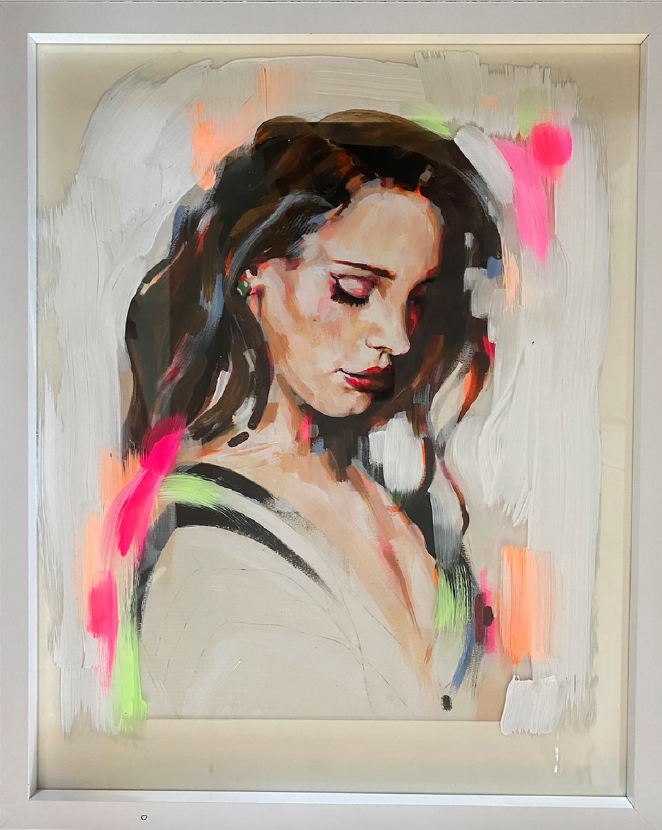 Often turned away, or vacantly gazing towards us, She is turning towards an inner world that can never be wholly communicated to her audience. Paradoxically, her ‘Celebrity’ veil, in these portraits, bares tiny elements of her soul; it covers and uncovers the personal that she grasps on to. She and her Celebrity dissociate through Her veil of pink intensity and disseminating brush marks. She is both present and absent. Intoxicating and disconcerting. Repellent and alluring. A product of media and genuine to herself. Insincere and extremely real.